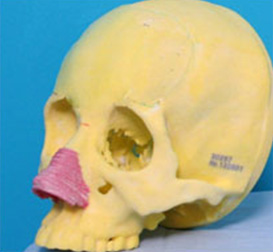 以CT檔案為基礎,使用3D列印機製作出客戶臉部的實態模型。模型與實際骨架誤差為1毫米以下。