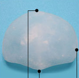 為了達成這個條件,必須依照個人需求,製作客製化的矽膠植入物。矽膠植入物可做成圓筒狀,因此,即使是大小約8㎝×13㎝的植入物,亦可透過4~5cm的傷口置入額頭。